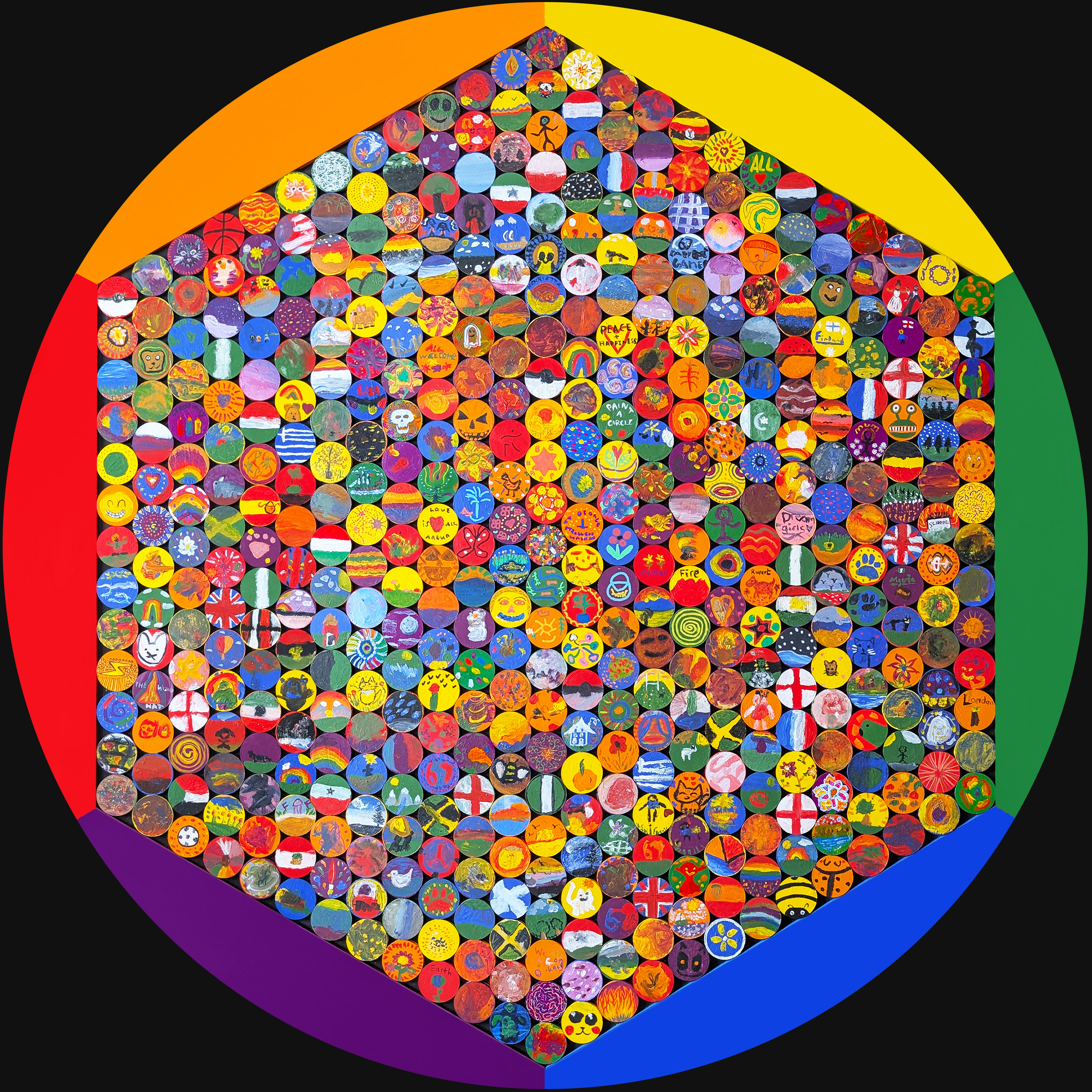 This giant 468 piece mandala is on permanent display outdoors at Meadow Vale Community Centre, BS5 7RF. Throughout the winter of 2025-26 we ran regular, well publicised workshops at local venues including Hillfields Park Community Centre, BS16 4EH, encouraging people of all levels of skill and confidence to create a painting with us. Pupils of Summerhill Academy Junior School and Mama Bear's Day Nursery contributed many paintings too. Funded through the Quartet Express Grant.